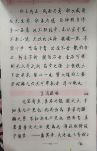 写一手好字,是中国文化的传承,老祖宗留给我们的“宝贵财富”,我们绝不能抛弃,所以本组成员响应学校的第四学期的号召每天认真书写字帖,练好每一个字为今后的生活夯实基础。