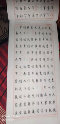 首先就是从书写上面开展,每天坚持钢笔临摹让每一个人都能书写一手好字,正如人们常说的字如其人就是这个道理,其次就是学习强国的打卡记录,每天坚持打卡学习党史,促进我们对当前形式的了解,做到不脱离社会的发展;剩下的就是在社区的志愿者活动,不参加不知道的活动,更能促进我们对这个社会的认知,能够让我们更快的融入这个社会。
