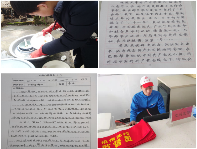 大家在完成第一周学习任务时都比较积极,没有拖拉情况,努力完成学习强国任务,坚持每天打卡。工管201程正宇,每天为家里做家务,帮助父母解决一些小事,感恩父母。工管211王宁本周练字,他说:“我在书写汉字的同时静下心来,一笔一划来感受汉字带来的文化宝藏和精神财富,让我对中华文化有更深的了解”。工管211刘权,在家读了一本书,他说:“从书中我明白很多做人的道理,我学会运用书中的知识来克服我们遇到的生活困难。读完《狼图腾》亦是如此”。