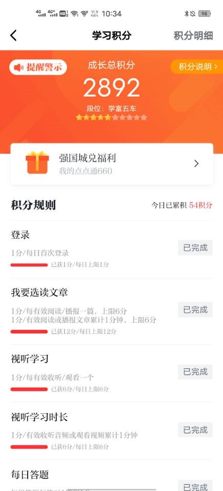 在第四学期的第一周,小组成员积极开展活动。在可选项目中,小组成员在家进行了家务整理,减轻了家长们的负担,小组成员的学习强国年度积分达到100-400不等。在必选项中,各成员完成了10页钢楷书写练习,提升了汉字书写能力。