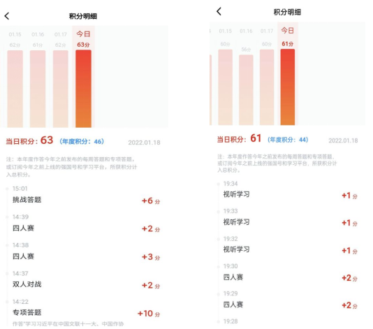 第四学期以来,我系学生形成了聊感想比分数的良好氛围,不仅充实了寒假生活,还确保政治境界的提升。今后我系将继续利用“学习强国”这一平台加强对全体师生,特别是党员师生的思想洗礼。