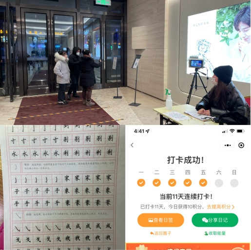 因疫情防控原因,我系本次开展独具特色的“云”第四学期,在“云”第四学期的第二周里,我们小组成员十分积极,每天进行学习强国和字帖临摹活动,并在微信小程序进行打卡。通过对学习强国的学习,我们了解国情,了解祖国日新月异的变化,零距离聆听党的声音,形成与时俱进的思想。本组成员土木191耿闯在商场担任志愿者,管控来往人员带好口罩扫好行程码和健康码。既锻炼自己又服务社会,充分展示了齐工程学子“为融入社会走进来,为服务社会走出去”的办学理念。