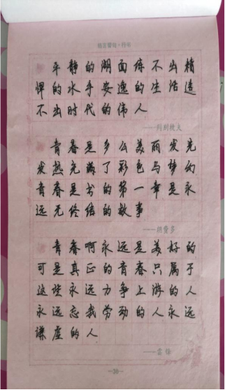 为更好地落实2021-2022学年度第四学期工作,丰富学生的社会阅历,增强学生的社会责任感和人文修养,在2022年1月10日开始的第四学期中,本小组在指导教师胡迪老师带领下积极完成第四学期社会实践任务;小组成员樊庆龙、窦世洋、何昕昱、徐浩航、李可棠。在指导教师组织下开始第四学期第二周指导会进行任务分发、并针对第一周所暴露的问题进行探讨。自17日起,小组成员每天按时完成钢楷临摹一页,学习强国积分每天至少50分,阅读相关书籍并且记录心得。在第四学期开展的第二周,我们都以饱满的热情积极真实的完成各项任务。在接下来的几周里,我们会继续努力争取达到更好。