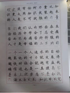 写一手好字,是中国文化的传承,老祖宗留给我们的“宝贵财富”,我们绝不能抛弃,所以本组成员响应学校的第四学期的号召每天认真书写字帖,练好每一个字为今后的生活夯实基础。