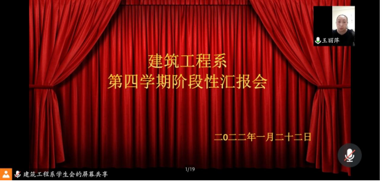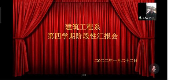 为更好的落实第四学期的工作,了解学生的学习情况,建筑工程系于1月22日14:00在腾讯会议召开“第四学期阶段性汇报会”。
