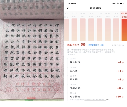 第四学期已经迎来了第二周,本周我们组员练习了长仿宋体字体,掌握了其字体的特点,以及其书写要求,能够正确的完成书写;我们还进行了学习强国的学习,通过“学习强国”平台的学习,我们不仅学会了如何营造良好的学习氛围,打造学习型社会,还学会了怎样提高自己的思想觉悟、文明素质、文化品位、科学素养。小组成员每天按时完成微信小程序打卡,以及各项学习任务,明确了自己的学习目标。
