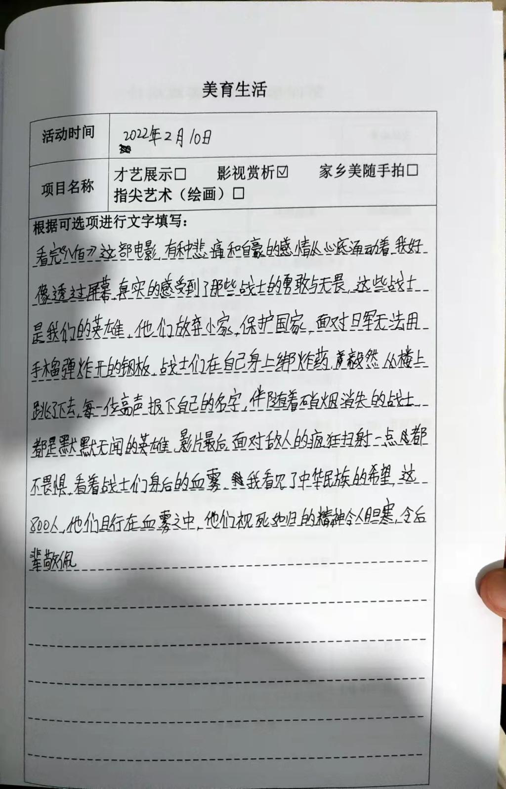 关于美育生活这个项目,我们小组成员选择的是影视赏析,本周要将影视赏析的感悟完成,我们小组的钢楷字帖以及学习强国每天在坚持。在对各个实践项目进行分析以及布置本周任务后,生涯老师要求我们对自己课外阅读的书进行一次心得交流,并且在小组成员中抽出一位进行评价。
