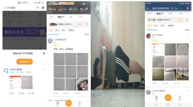 除了学习强国和每天的字帖临摹以外,我们小组的成员还根据自身的身体条件和开展了居家锻炼,如仰卧起坐、跳绳等,在第四周,我们逐步准备开展完成专业项目的作业任务,首先完成了专业项目的调研报告,预计第四周学习结束后,在第五周完成所有的专业项目作业,并且逐步完善进阶项目的部分任务,在最后一天,小组成员姜孟琪,李汶钊,李泽旭,董天圆,栾添分别对第四周的任务进行了汇报与总结。