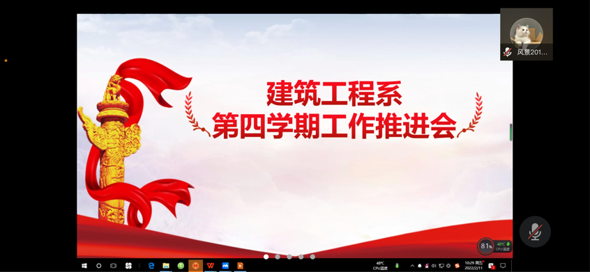 2月11日上午,建筑工程系召开第四学期工作推进会,学生工作副主任、辅导员、党员、学生干部在线参会。