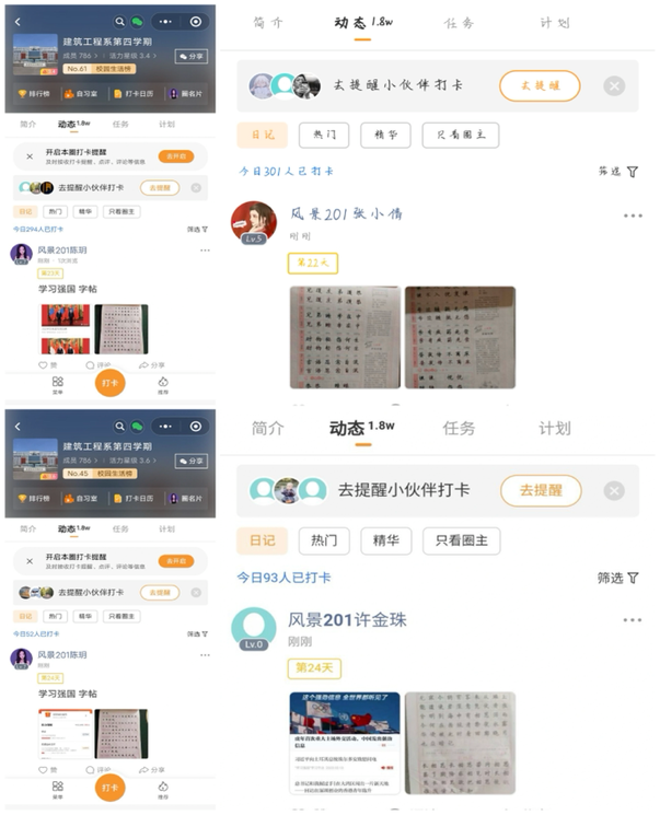 首先我们本周进行了读书交流活动,提升自己的思想道德水平。在家坚持体育锻炼,每天坚持写字帖,练字。积极响应学校的号召,坚持学习强国的学习。通过本周的活动,我们的自身体质得到加强,学习能力有了进步,字体也更加工整,可谓获益良多。