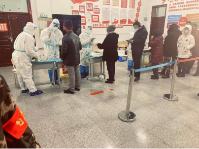 2022年1月26日上午,JZXSQ35组投入社区进行志愿者服务,协助社区人员进行核酸检测工作。我们在旁边整理队形,保持秩序,将人员间隔调至1米以上。工作过程中,我们没有人叫苦叫累,全都义无反顾的全身心投入工作。