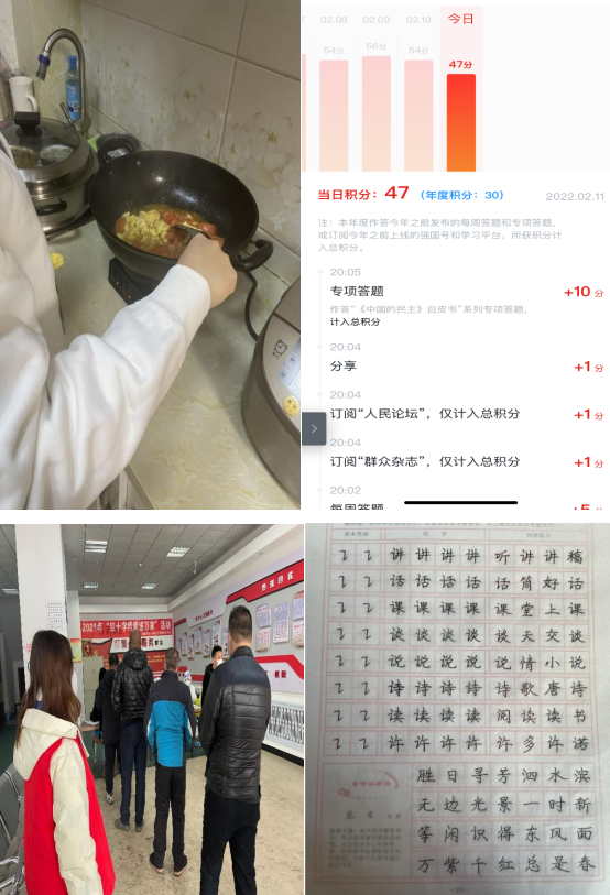 转眼间,春节已过,第四学期的第四周也即将结束,本周小组成员除了日常的学习强国和字帖临摹打卡外,还完成了读书感悟和感恩实践与志愿活动。