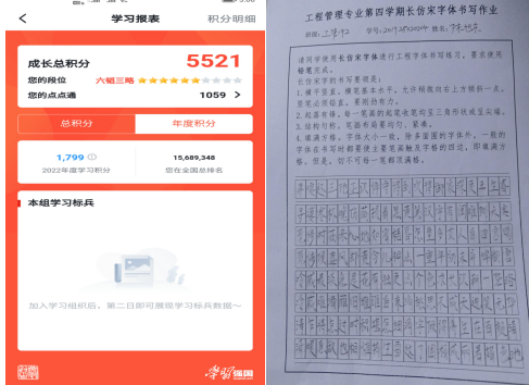 在第五周里,第142组成员工管192陈旭东、帅潇,耿雯按时完成第四周的钢楷临摹、长仿宋体书写、学习强国、居家锻炼等任务。