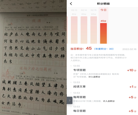 本周是第四学期的第五周,在本周小组成员每日均积极学习打卡,每日坚持完成学习强国APP上面的任务和每日练字。