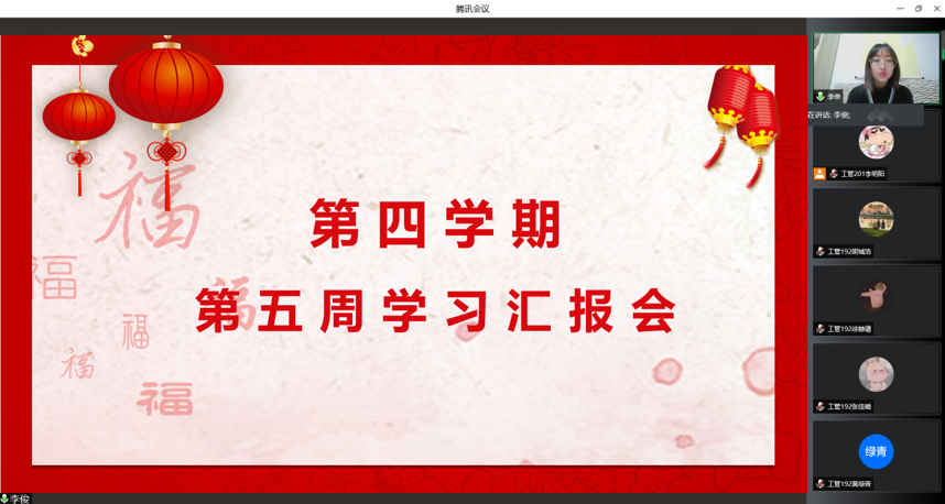 第四学期第五周即将结束,2月18日19:30在指导老师李俊和党员学长邹明爽的带领下105-114小组进行了线上汇报。通过10组成员的汇报,了解各项活动的进展状况。
