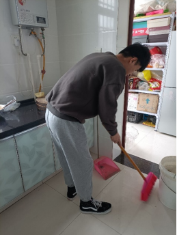 除了每日必完成的任务,小组成员也进行了感恩实践和志愿服务等内容。在居家学习的生活里,我们都积极参与家务劳动,为父母分担压力。每天主动整理房间,清扫卫生,帮助父母做一些力所能及的事。同时,我们也到社区帮助进行了环境的清扫。