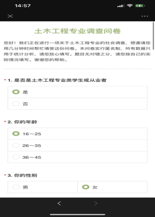 这个寒假响应学校的号召做了本专业的社会调查,关于我们土木工程这项工作的发展前景的调查,这次社会实践中我们通过走访,问卷调查等方式,对我们专业的项目进行了了解,并写下了我们在调查中发现的问题及我们认为有必要的一些建议。虽然在调查中遇到了种种问题,但是通过与生涯老师的沟通和共同努力下,我们得以克服,从中也得到了更多的感悟与经验,有了成长的感觉。