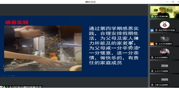 2022年2月18日,牛轶惠老师组织我们进行了第四学期第五周的总结工作,此次会议的内容为第四学期的汇报总结。汇报首先从19级开始进行,20级和21级陆续进行汇报,汇报内容主要是每周的必选项和可选项完成的进度。在牛轶惠老师的督促下,同学们完成的效果较好,达到了预期目标。牛轶惠老师也给我们举了往年第四学期不合格的例子,让我们按照规定认真完成第四学期,严肃对待第四学期。