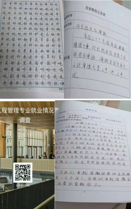 第四学期已接近尾声,本周是第四学期社会实践的第五周。从始至终,小组成员们每天按时完成学习强国的学习任务。通过相关学习,深深地感受到了祖国的强大以及人民的美好幸福。通过临摹字帖,深深地感受着中华文化的博大精深,并且在书写方面得到了极大的提高。为了强身健体,练就良好的身体素质,居家锻炼是必不可少的。在锻炼身体的同时,也安全的度过了寒假时光。本周阅读了《国徽》一书,身临其境的感受到了新中国第一枚国徽的设计过程以及其背后的内涵。本小组成员在本周通过网络问卷调查的形式,进行了工程管理专业就业情况调查,并且取得了相关科学数据。
