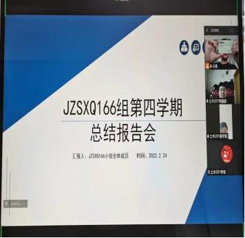 第四学期的开展已经接近尾声,第166小组成员乔睿、韩遵鑫、李宝、姚宇航于2022年2月24日早九点通过腾讯会议展开线上第四学期总结会议。