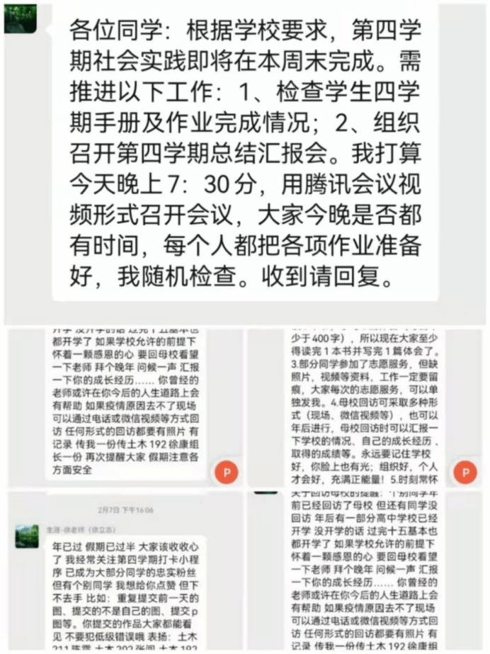 本周是我们第四学期活动开展的最后一周,随着活动逐渐接进尾声,生涯导师徐立志老师于2月23日晚,通过腾讯会议的形式召开了第四学期总结会。在会议中,大家踊跃发言,总结自己的第四学期情况,展示作品、汇报感受,徐老师并进行了总结与点评。我认为,我们之所以可以严格完成第四学期的相关任务活动,少不了徐老师对我们的关心与督促。他以身作则,在这个寒假中经常在群上带领我们学习锻炼,分享他的学习成果及完成情况,并且耐心为我们解答疑惑传授他的经验,让我们有一个更明确的目标去完成第四学期的任务,这对我们起到了一个很好的引领作用。通过本次会议,我组成员都认识到了自己的不足以及需要改正与提升的地方。在本次第四学期剩下的几天中,我们会更加严格的要求自己,尽量做到高质量完成任务,不负老师家长的期望,收获更多精彩。