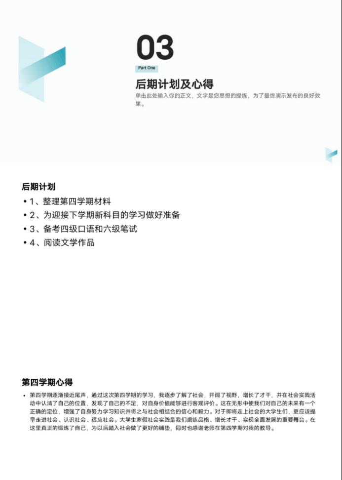 在第四学期里,我们的社会实践能力成长了许多,同时我们对未来有了明确的计划,这是我们的成长之处。从小组群的反馈情况来看,组员们的第四学期的各项任务完成得很不错,每天都能够自觉打卡,老师曾经说过:“即使第四学期结束了,我们仍需不断努力学习,充实自己,才能拥有美好的前程”。我们要牢牢记住这句话。