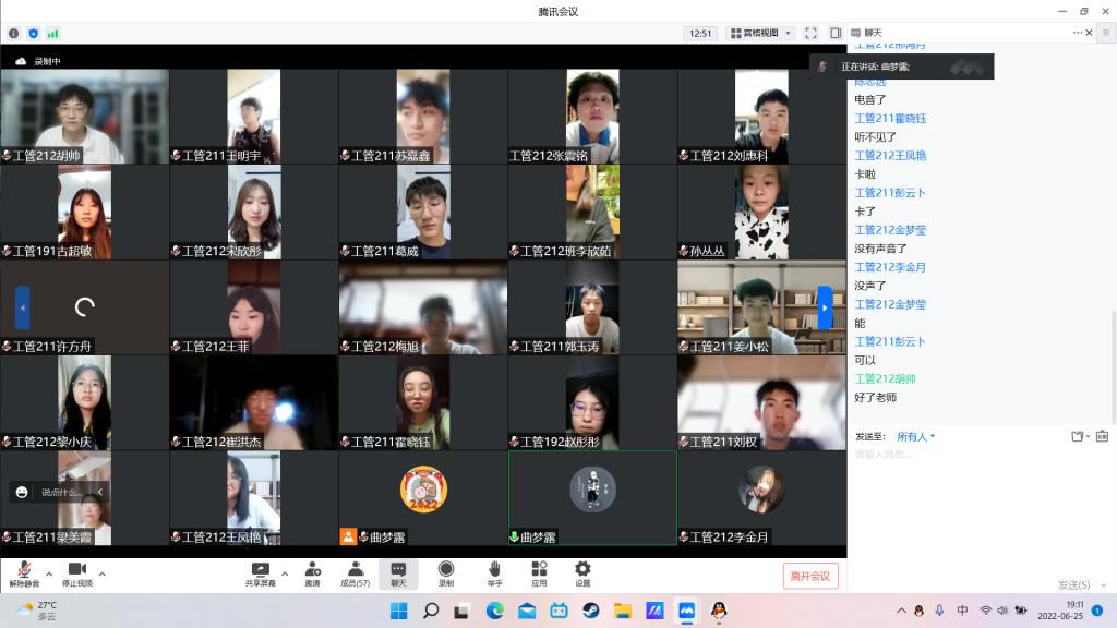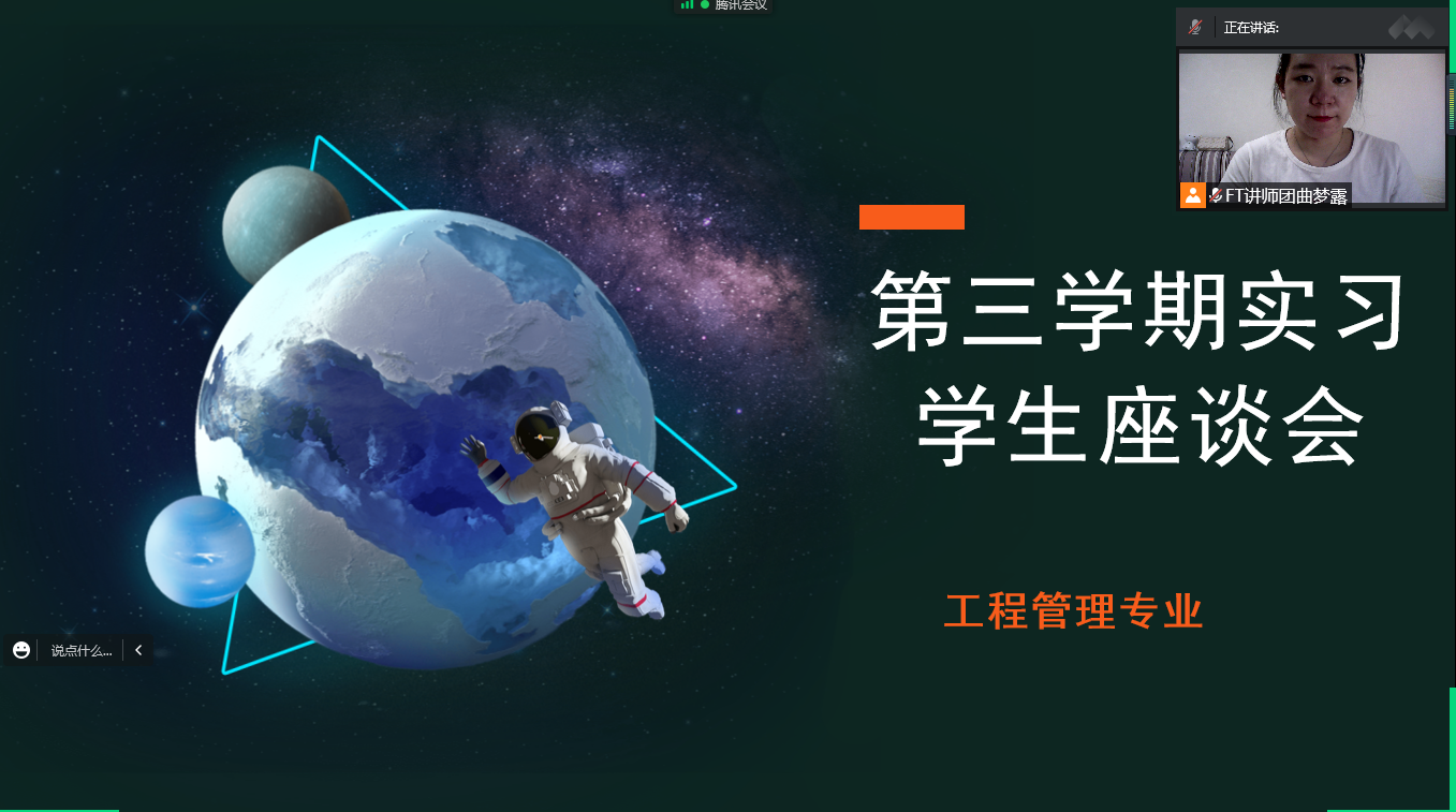 6月25日晚19时,工程管理专业召开第一次第三学期实习网络座谈会,会上所有在齐齐哈尔市市内实习的55名同学参加会议,会议由专业负责人曲梦露老师主持。