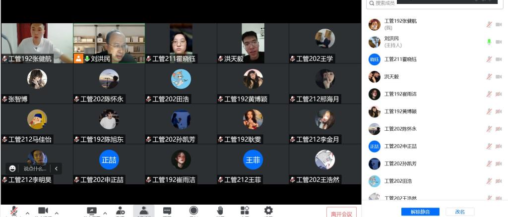 6月27日19时,工程管理专业生涯导师刘洪民召开第三学期线上指导工作会议。参会人员有工管192班7人,工管202班7人,工管212班7人共计21人。