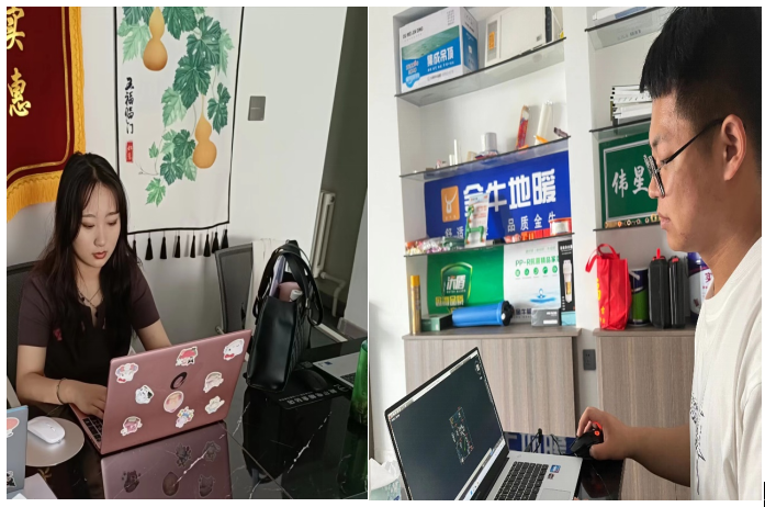 两位同学在公司设计师的带领下,对未施工毛坯房进行量尺工作,并进行草图的绘制。利用CAD软件进行后期放图和软装布置,有时还会进行现场施工的监督,深入参与到样板间的装修中,与客户即时进行沟通满足客户需求。