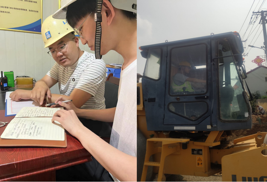 我们只要有测量任务,我们就会跟着一起出去,我们从⼀些简单的测量任务开始,使⽤仪器不是很娴熟,对现场估计偏差也很⼤,所以我们的测量很慢,也会时不时的出现⼀些错误。但是指导教师在场,会很快给我们纠正过来。我们在测量的过程中,当我们遇到一些问题,我们在现场请教施工人员,而且回到办公室后也会进行上网查阅答案。这对我们的实习和未来正式进入施工现场也有非常大的帮助。