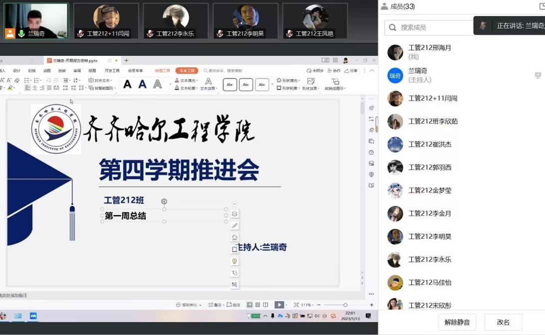 会议中,兰瑞奇学长为学生们着重阐述了第四学期的重要意义,讲述需要完成的任务,并且要求同学们线上汇报第四学期的进展情况,指出在四学期过程中,大家一定按时间节点完成项目的同时,更要注意自身安全,做好个人防护工作。在学长的耐心指导和细心询问下,帮助同学们解决了在第四学期中所遇到的各种困惑。最后在学长的鼓励下,使同学们对今后的第四学期任务更加有信心。学长也强调在四学期中如果遇到不明白的地方,可以随时联系学长。