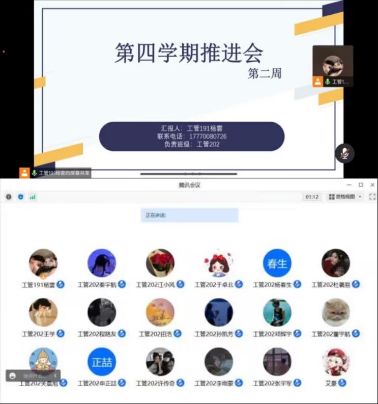 为促进工管202班全体同学更好的开展第四学期,更好的规划第四学期进程,工管191班杨雲于1月14日组织了第四学期推进会。会上讲解了第四学期整体的任务内容,总结了同学们前一周已经完成的各项任务,并且确定了下一周需要进行的项目。
