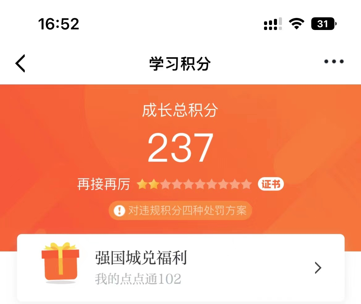 身为大一学生在此次第四学期中我们组通过其中一项任务“学习强国”去领略我们祖国现在的安康以及进步,并且作为当代青年通过“学习强国”这一平台能时刻的了解到我们国家的大小事情,还可以学习到我们习近平总书记的金句,时时刻刻关注我们国家的英雄,并且学校通过关注我们积分记录来查询我们每天学习强国的情况。但是作为当代青年关注我们国家的大事小情,关注我们国家的领土安全本就是我们青年应该做到的,就算是没有监督我们也一样会做得很好。从每天的学习强国中,我明白我们是处于新时代下的时代新人,要领悟人生真谛,把握人生方向,追求远大的理想,坚定崇高信念。