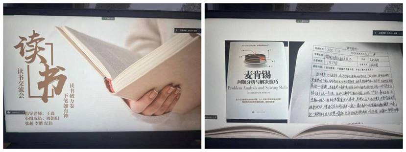 李胜同学分享了《麦肯锡工作法》、《麦肯锡问题分析与解决技巧》两本书籍的阅读心得。李胜说:“以前遇到问题就不知道该如何处理,大脑一片空白没有思路。而这两本书教会了我如何分析问题、解决问题。”其他三位同学也都从阅读中有所感悟:周朝阳同学从《哈利波特之死亡圣器》中感悟到成功在于坚持;张超同学通过《活着》一书顿悟了活着的更深层次意义;纪伟同学重温《西游记》后表示,在不同年龄段看同一本书,感觉很不一样,又有了新的认识,以后他会利用课余时间重读经典名著,感受经典的魅力。最后,王鑫老师给同学们讲解如何进行陈述汇报,鼓励同学们在课堂上积极参与汇报,抓住机会展示自己、锻炼自己,提高能力。
