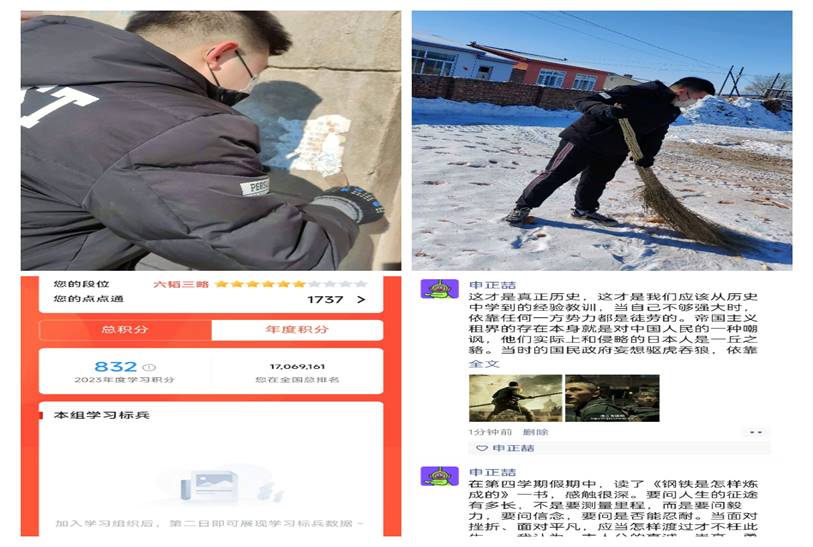 第四学期我观看了《八佰》这部电影,这是真正的历史,而不是像许多电影中所展示出来的一切顺利,真正的革命是用先驱们的生命,血肉筑成的。同时,《钢铁是怎样炼成的》这本书,我也已经读完,主人翁保尔是许多人敬佩和学习的榜样,一个活出生命意义的人,一个为革命奋斗不懈的人。而我生活在和平年代,珍惜今天的幸福生活来之不易,更应该努力学习,努力工作,为伟大的祖国贡献自己的力量。