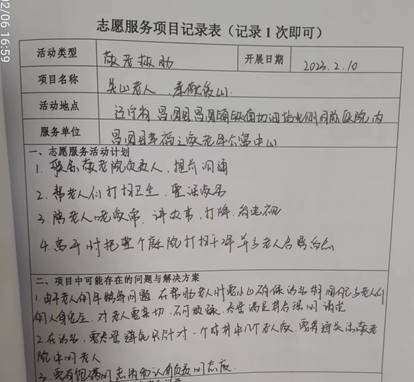 老吾老及人之老,幼吾幼及人之幼。尊老、敬老作为中华民族几千年绚烂文化之精华源远流长。为了宏扬中华民族传统美德,进步当代高校生的感恩意识,尽自己的绵薄之力关心老人,用自己热忱的心去暖和老人,让敬老院里因各种缘由而失去家庭暖和的老人感受到关爱与照看,美好的安度晚年。齐齐哈尔工程学院开展第四学期志愿活动,风景221班甘思旺同学在本次敬老院志愿者实践活动中,严格要求自己,工作勤恳,责任心强,态度端正,不仅给敬老院里的老人们送去了贴心的温暖,也提高了社会实践能力,弘扬了中华民族敬老爱老的传统美德。为融入社会走进来,为服务社会走出去,第四学期不仅增强了我们的能力,升华了我们的思想,还让我们增进了与家人的感情。古语有云:“树欲静而风不止,子欲养而亲不待”,趁着阳光明媚,趁着椿萱并茂,多主动关心我们的父母和我们爱的人吧!