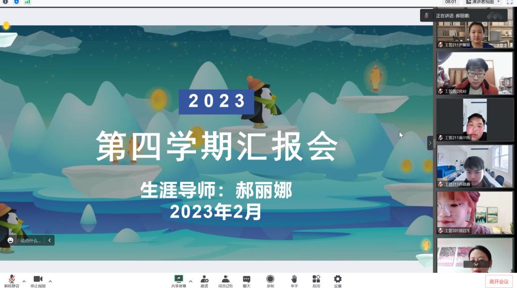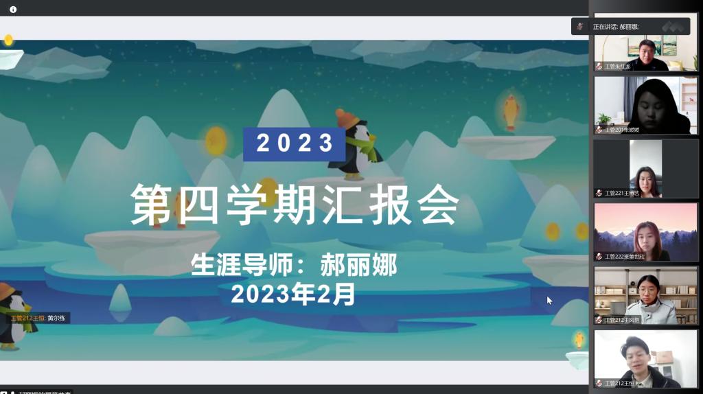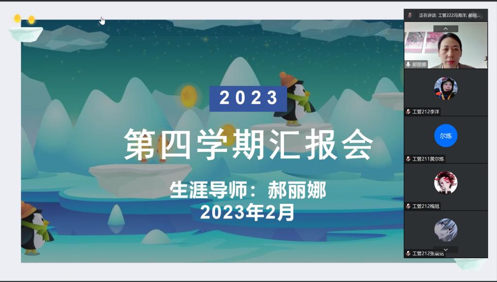 2月9日,生涯导师郝丽娜老师召开第四学期第四周指导会,郝丽娜老师指导的20级、21级、22级学生参会。