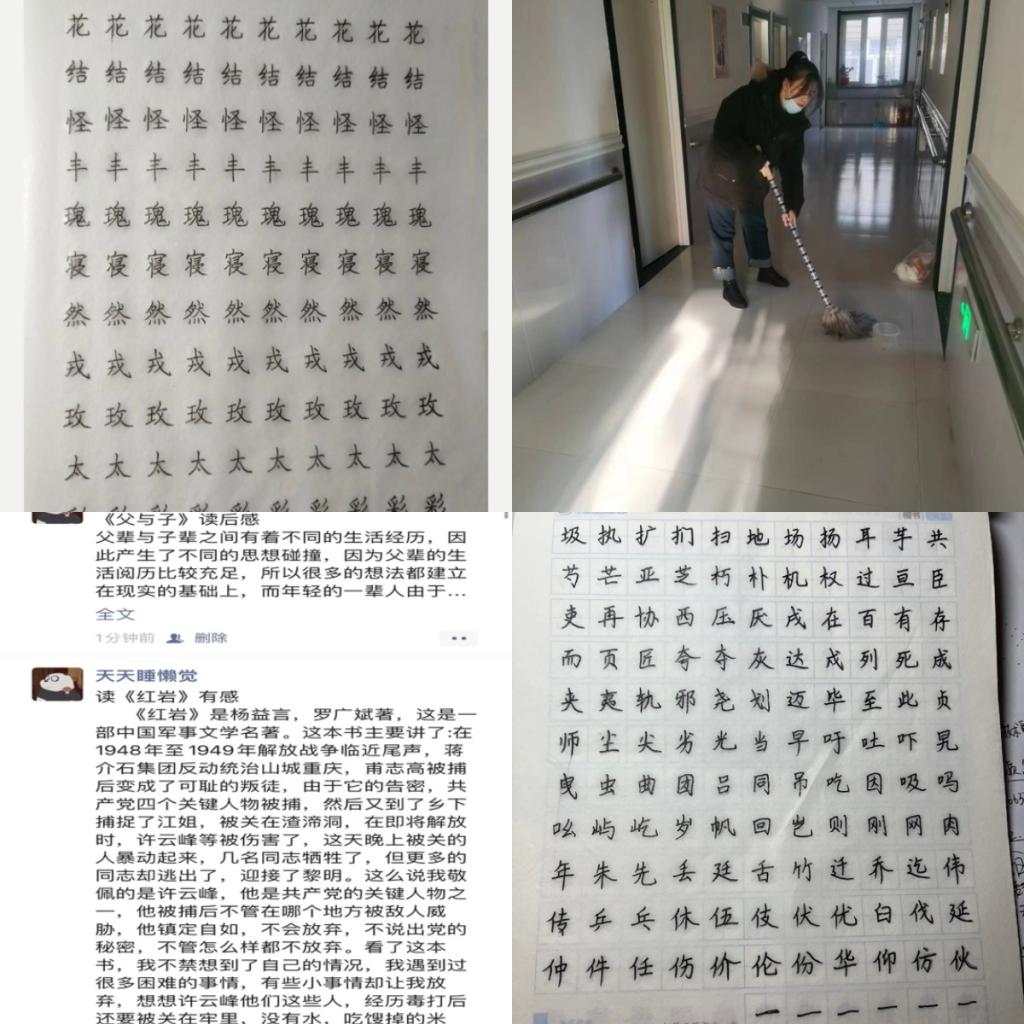 在第四学期期间,GL-016小组成员完成了三分之二的字帖临摹、读书分享和学习强国,并深入到社会实践当中,为养老院老人打扫卫生,讲解血压仪的使用等志愿服务,这不仅充实了我们的假期生活更让我们的精神境界有了更高的提升。在这短暂的四周里,我们在生涯老师李春雨及党员学长的指导下如期并顺利的完成各项任务。