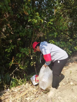 本次参加了丙贡村委会组织的改善和美化丙贡村小练地居民的居住环境志愿活动,主要清扫小练地进村道路两旁白色垃圾。在拾捡的过程中我发现道路两旁的垃圾主要是因为没有养成顺手丢进垃圾桶里的习惯。