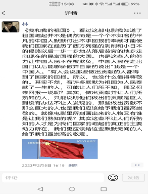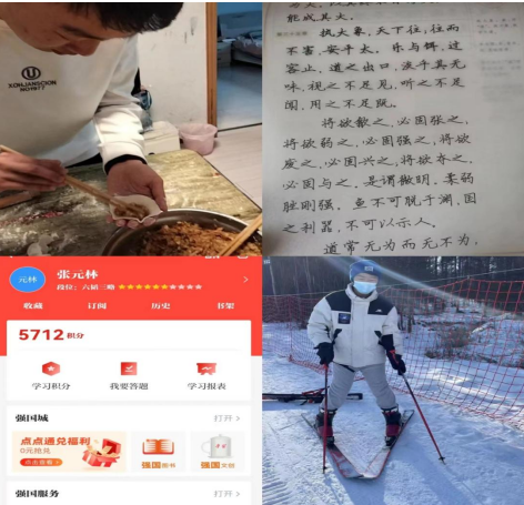 第四学期快要接近尾声,本周我依然有序的展开各项活动,在开展各项活动的过程中,组员们都积极参与,积极配合。本周除了每天进行钢楷临摹和观看学习强国的任务外,我还根据自身的条件和环境因素展开了问卷调查读书交流活动,在问卷调查活动中增强了我们的专业知识,在读书交流活动中,分享自己的心得体会,观看了爱国主义电影,《我和我的祖国》对我有了深深地感触,就像电影里所刻画出来的人物又有谁是让我们熟知的呢?其实这些不让人们所熟知的人才是为我们国家的崛起的真正的主要动力所在,我们更应该给这些默默无闻的人给予我们最崇高的敬意。还完成了百万青年上冰雪的活动,在滑雪中找到了乐趣,既锻炼了身体还增长了技能。