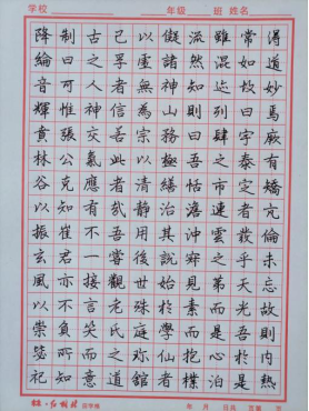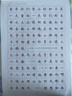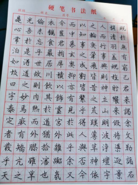 在本校开展的具有特色的第四学期社会实践活动中,我收获了许多。我们每天坚持临摹字帖,在临摹中锻炼书写能力,在字帖临摹过程中使我的书写得到更好的提升,规范笔画使字迹更加工整。钢楷临摹非常考验一个人的耐心,在每一篇钢楷的练习中,体会到了静心的重要性。
