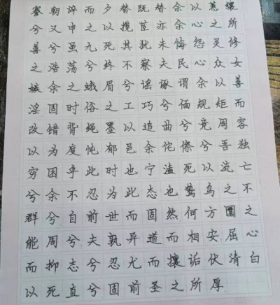 首先是每天的钢楷临摹,从第四学期开始,我会基本保证每三天完成一篇字帖,通过这学期和在学校的练习,我觉得自己的字体变得比以前更加工整了,同时通过练字也能让自己的内心静下来,得到了一些收获。