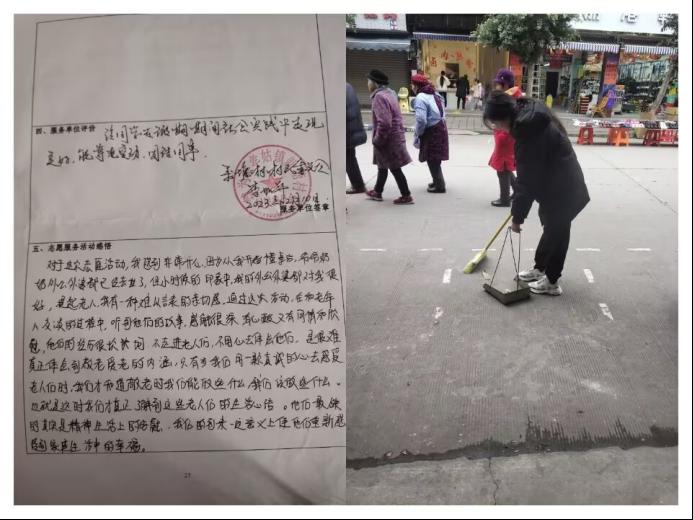 建筑工程系GL-047小组组员王学于第四学期期间,参与了乐山市犍为县孝姑镇新塘村组织开展的清理街道以及关爱空巢老人的志愿服务。为了积极响应“绿水青山就是金山银山”的号召,积极参与环境保护、生态建设的服务。这次环境保护的志愿活动,通过做一些力所能及的小事来美化家乡,呼吁并带动大家一起爱护家乡环境;此外,深入社区、深入农村,对孤寡老人提供关怀与温暖,主要是与老人闲话家常,帮助老人打扫卫生,在精神上、生活上帮助老人,丰富老年人的精神生活,给他们普及饮食、养生、防疫等健康知识。