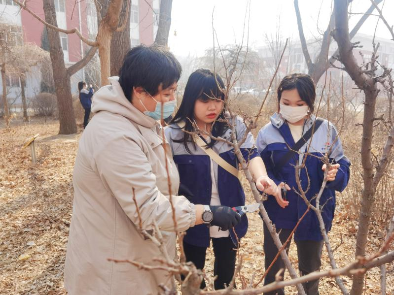 2023年3月31日风景进行园林专业教师宋兴蕾带领风景园林2020级学生,风景园林专业生涯导师高飞到现场进行指导。同学们在校园内进行树枝修剪实训学习,将课程和校园真实项目相结合进行操作。