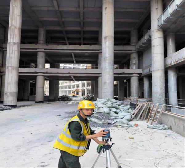 土木222何泓颍:本周的实习内容主要是放线,每项建筑工程施工开始就是施工定位放线,它关系到整个工程的成败,是保证工程质量至关重要的一环。按照现场的施工员的说法,放线其实就是把图纸上的形状按1:1的比例投放到地面上,放线人员不仅要掌握各种仪器的操作,而且得能识图,并且能快速地记忆数值,要求精确的操作等等。