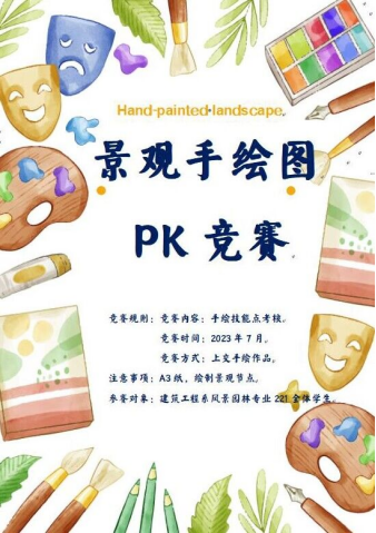 为检验和展示参赛选手对园林景观手绘的理解以及运用马克笔和彩铅等工具绘制园林景观图纸的能力、效率及职业素养,促进教赛结合人才培养模式改革与创新,培养可持续发展的、满足社会发展需求的技能人才。建筑工程系风景园林专业特举办“景观手绘图”项目竞赛。