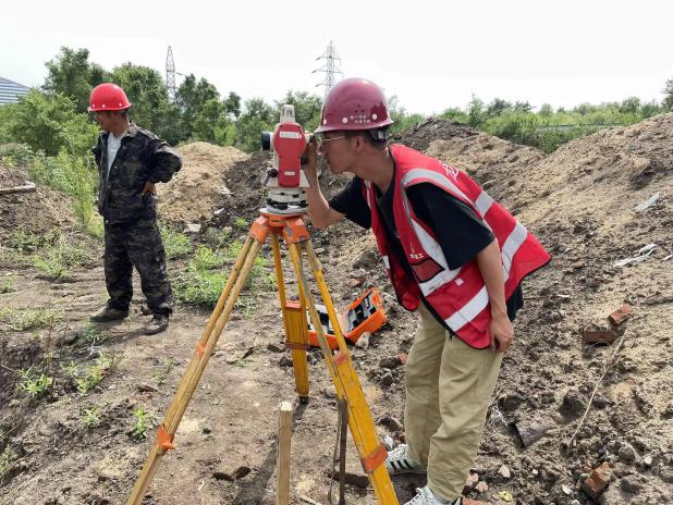 我们的岗位都是测量员,主要进行厂房基础的放线,进行钢筋标高的测量、地面标高的测量,还有土壤回填高程的测量。