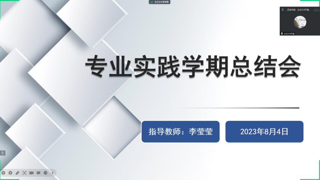 为掌握学生在专业实践学期的完成情况,8月4日晚,土木工程专业指导教师李莹莹召开专业实践学期总结会,本次会议由指导教师李莹莹主持,土木工程专业同学全员参加。
