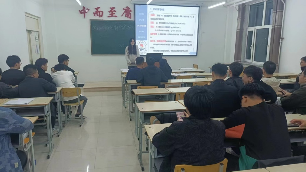 本次竞赛由来自建筑工程系和机电工程系的同学共计17支队伍报名参赛。各参赛选手经过前期充分的准备,于10月17日晚,在2教2511进行了现场汇报。同学们通过运用CAD、BIM建模等软件进行图书馆建模,用PKPM等软件对钢结构结点、构件等进行受力分析,使构件达到设计稳定性和强度要求,利用绿色环保建材、耐火耐高温材料建模、减少能源消耗。每组分别派出代表对小组设计的图书馆建筑设计和结构设计进行汇报。