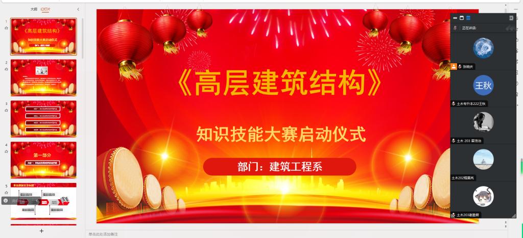 2023年11月10日,齐齐哈尔工程学院建筑工程系土木2020级、土木(专升本二年制)2022级的全体同学们通过腾讯会议平台参与了《高层建筑结构》课程知识技能大赛的启动仪式。这场以线上形式举办的会议,为同学们带来了一次独特而具有挑战性的学习和交流平台。